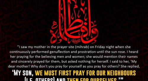 I saw my mother in the prayer site (mihrab) on Friday night when she continuously performed genuflection and prostration until the sun rose. I heard her praying for the believing men and women; she would mention their names and sincerely prayed for them, but asked nothing for herself. I said to her, … [Read more...]