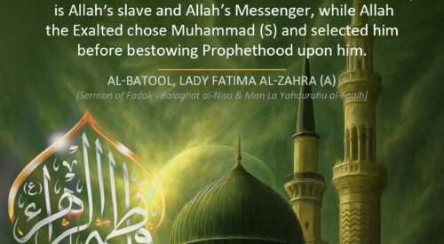 "And I bear witness that my father Muhammad (S), is Allah’s slave and Allah’s Messenger, while Allah the Exalted chose Muhammad (S) and selected him before bestowing Prophethood upon him." … [Read more...]