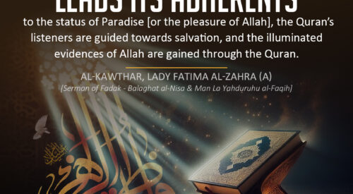 "The holy Quran leads its adherents to the status of Paradise [or the pleasure of Allah], the Quran’s listeners are guided towards salvation, and the illuminated evidences of Allah are gained through the Quran." … [Read more...]